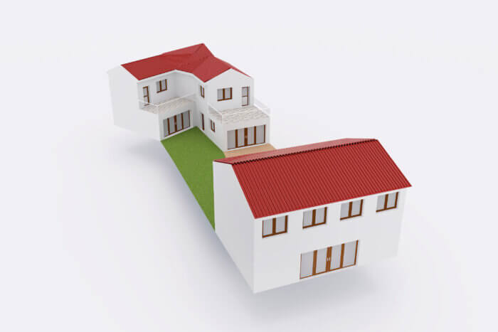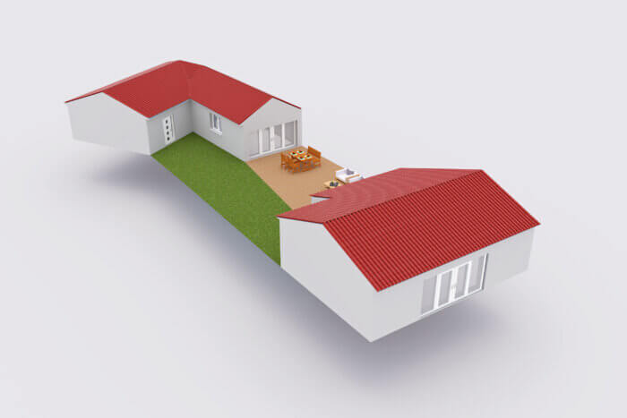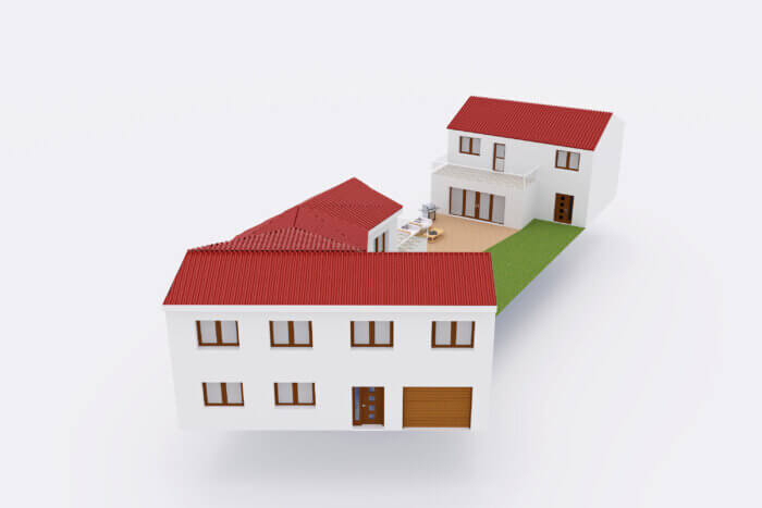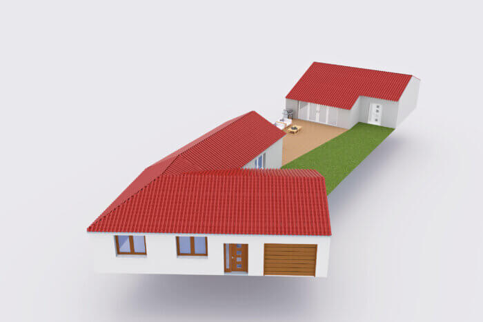Součástí domu je vjezd z ulice, který slouží jako garáž a umožňuje průjezd na dvůr. Na dvoře se nachází hospodářské stavení a stodola, za dvorem je samostatná prostorná zahrada.