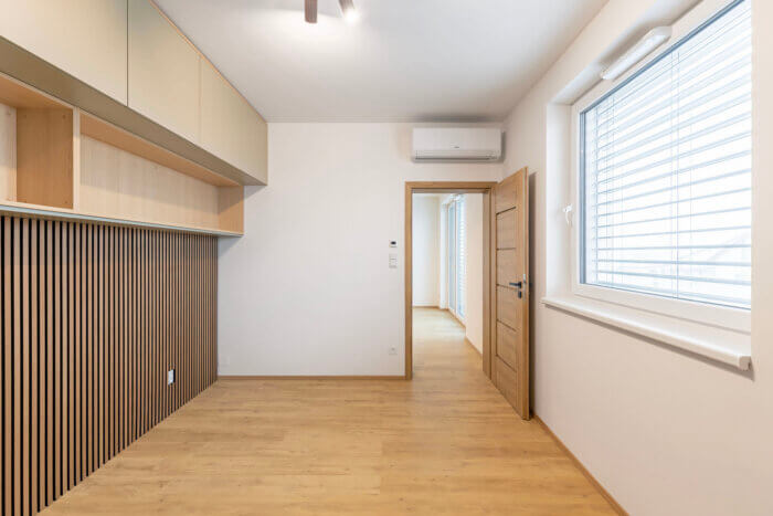 - Vzdušný a světlý interiér díky velkým oknům a balkonovým dveřím