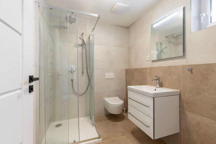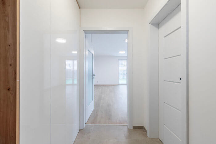 Vytápění a ohřev zajišťuje tepelné čerpadlo vzduch/vzduch – ekonomický a moderní systém. Byt je díky tomu energeticky úsporný a komfortní.