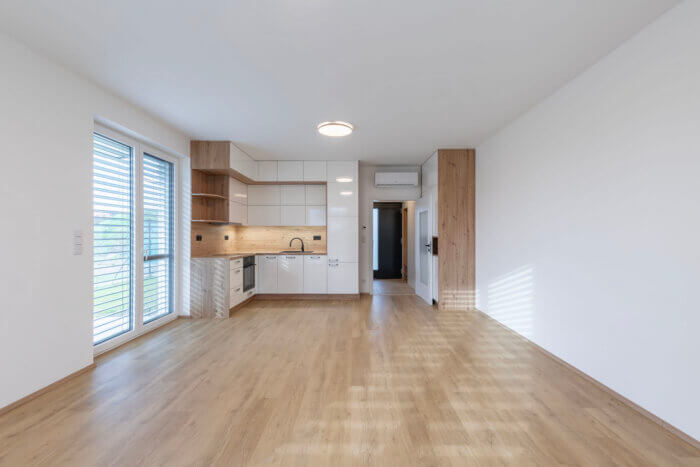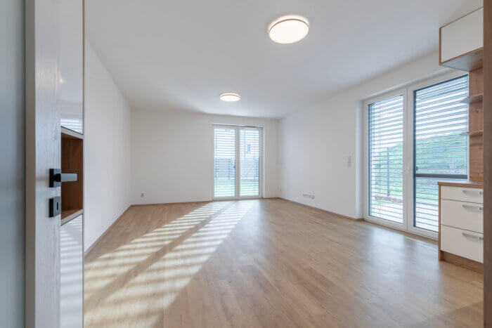 Pronájem moderního bytu 1+kk (41 m²) se zahrádkou, terasou (117 m²), parkovacím stáním a sklepem – Pasohlávky