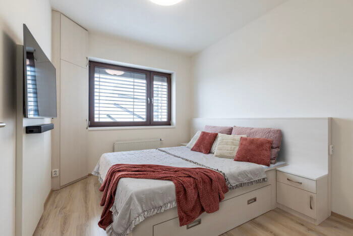 Nabízíme k pronájmu nadstandardní, plně vybavený byt 2+kk s klimatizací, balkonem a krytým parkovacím stáním. Byt o ploše 67 m² se nachází v 5. patře novostavby s výtahem, orientován na jihozápad, v klidné lokalitě s výbornou dostupností – OC Slatina, Kaufland, MHD.