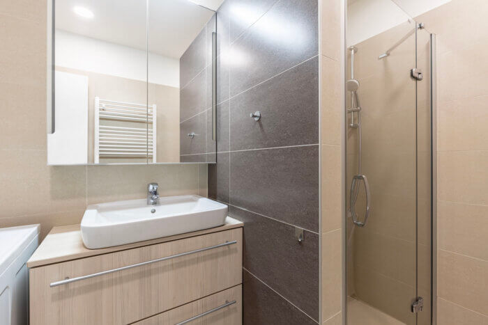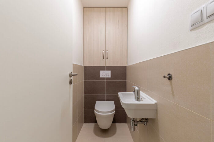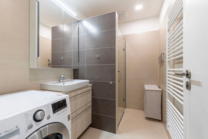 - koupelna se sprchovým koutem a pračkou včetně sušičky