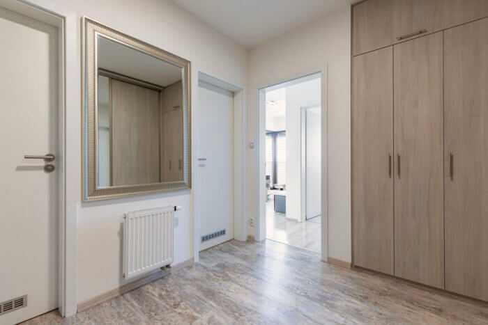 Byt je čistě vymalovaný, připravený k nastěhování.